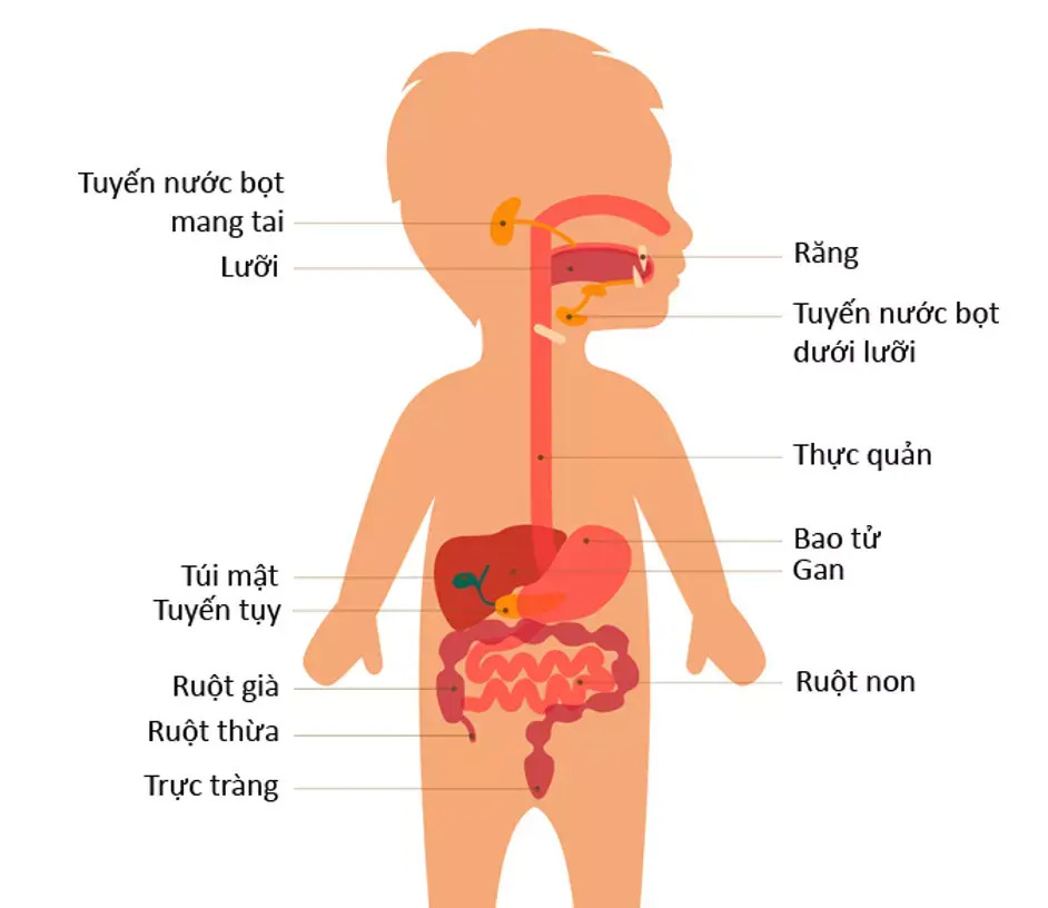 The digestive system of young children is not fully developed and has many significant differences compared to adults. The child’s stomach is smaller, the esophageal sphincter is weaker and is located higher in the abdomen. At birth, the child’s stomach is round and horizontal. Over time, the stomach will grow and move down to a vertical position, similar to that of an adult. This process is usually completed by the time the child reaches the age of 7 to 11.